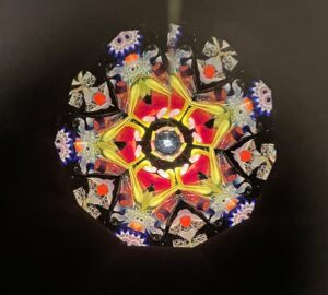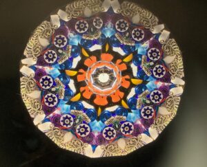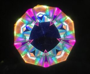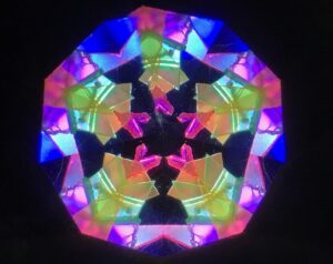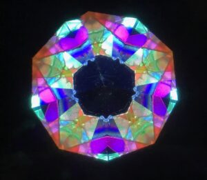 Approximately 6 hours. 3 hours am, 3 hrs pm, 1 hour for lunch. Imagine a column of kaleidoscopic magic extending linearly into a burst of dichroic fireworks. That is Totem! You will create your own Totem kaleidoscope, building a mirror system consisting of 7 components. You will also learn about focal lengths, ratios and kaleidoscopic engineering as we complete a splendorous column of color, charged by a liquid filled cell of your own creation. This project will introduce you to the architecture that creates the magic in a mandala. Students will have the opportunity to paint their own scope bodies using alcohol inks or select from pre-painted sheets. Prepare to have fun, be creative and learn new skills!