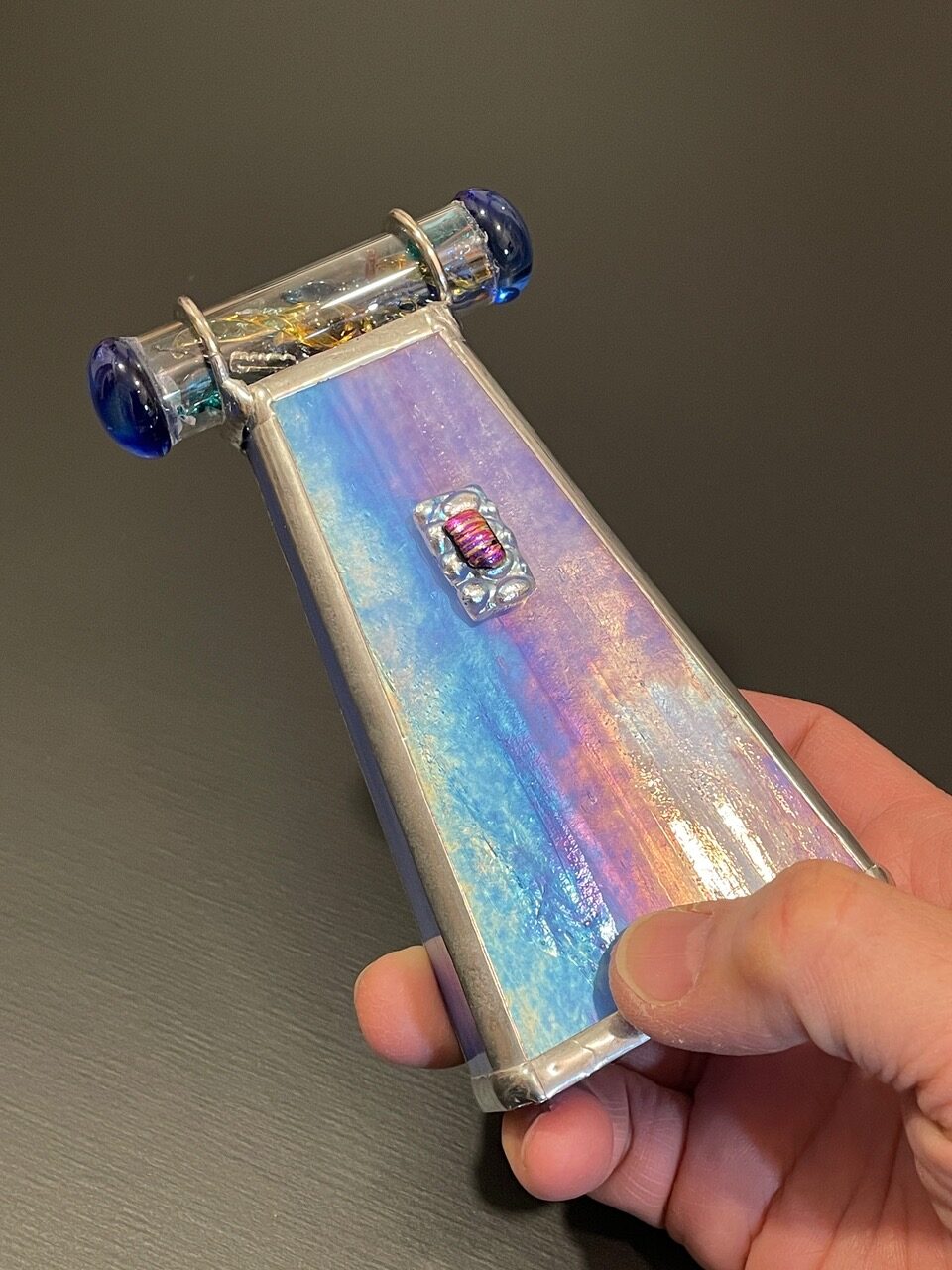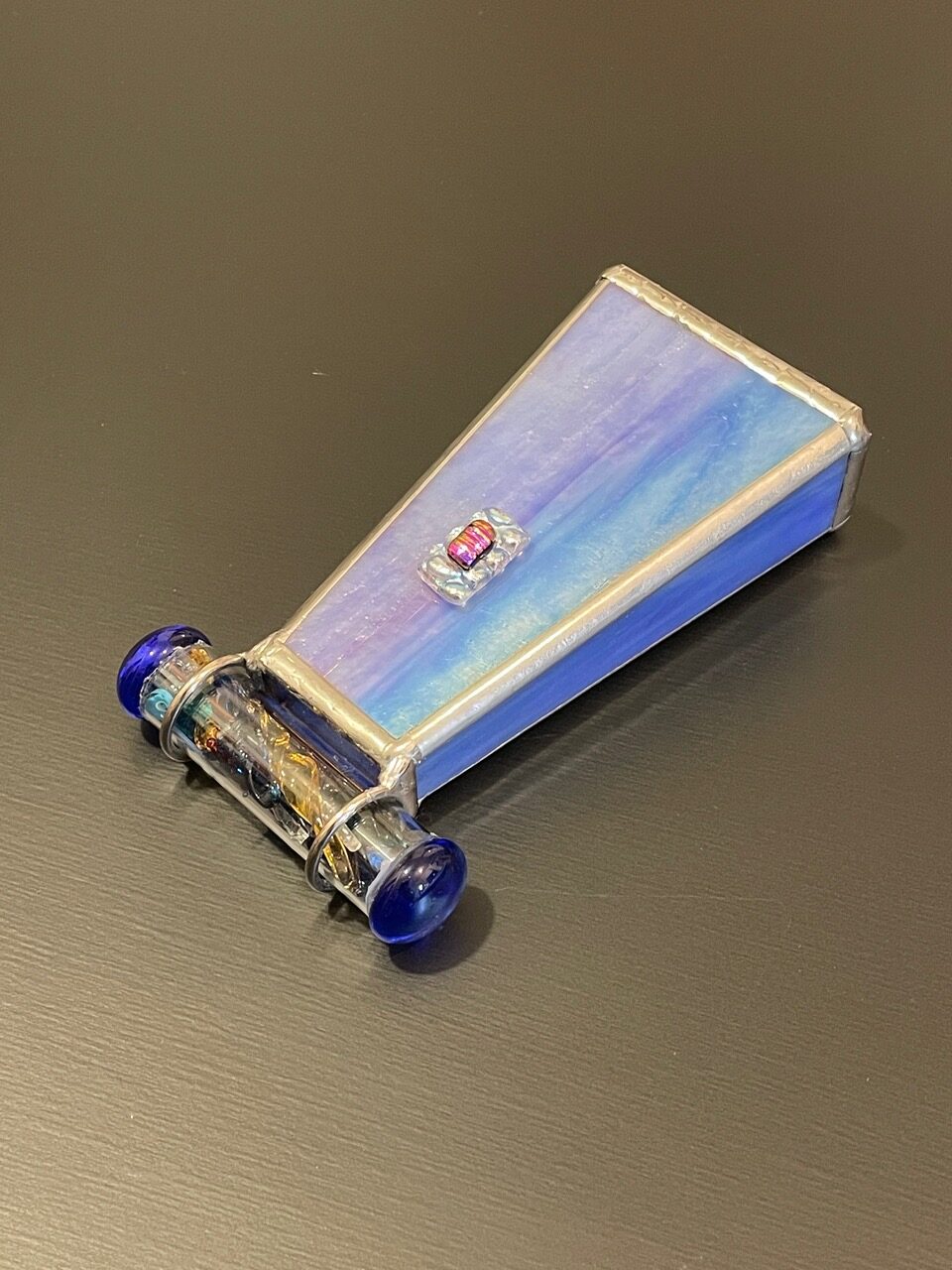 1/2 day class. This cutie is about 6” long and 1 1/2“ wide You will assemble either a 2 or 3 mirror system and fill your oil cell!