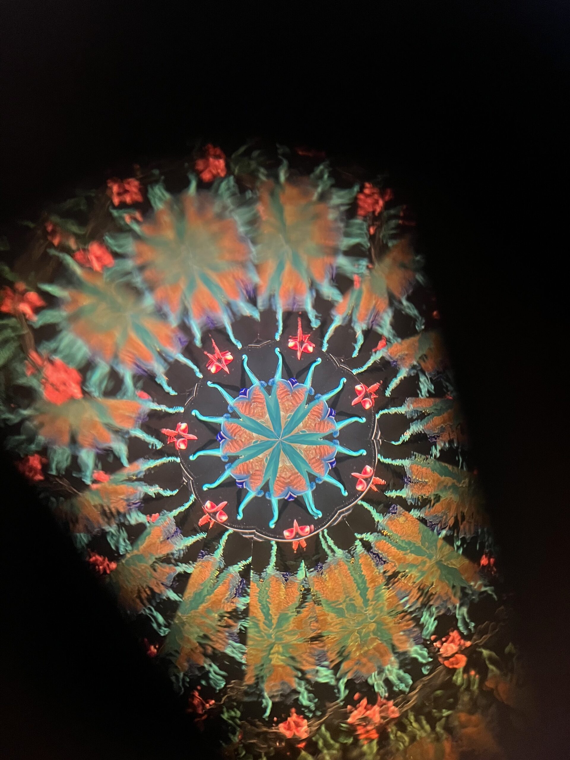 Kaleidoscope Created: 2026 Kaleidoscope Sub Type: Handheld Kaleidoscope Construction: Wood Wood Type: Burl Cherry with Walnut eyepice Number of Mirror Systems: 11 Mirror, 7 Point Cell/Object Type: Turning Object Cell Contents: Flamework Glass Image features: Full Field